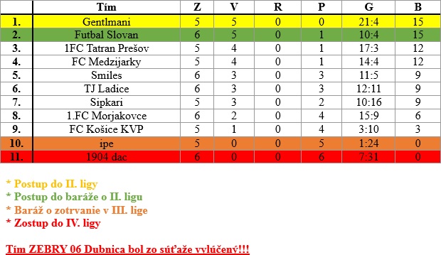 14:00 1FC Tatran Prešov 0 - 1 Gentlmani (0 : 1)